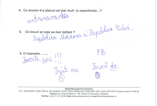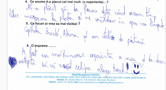 ♥ „Voia buna din taberele Alsys Travel este determinata de calitatea serviciilor, de profesionalismul membrilor echipei. Urmeaza o alta tabara, a sasea pentru noi!” (Tabara de vara din Thassos, 2016)