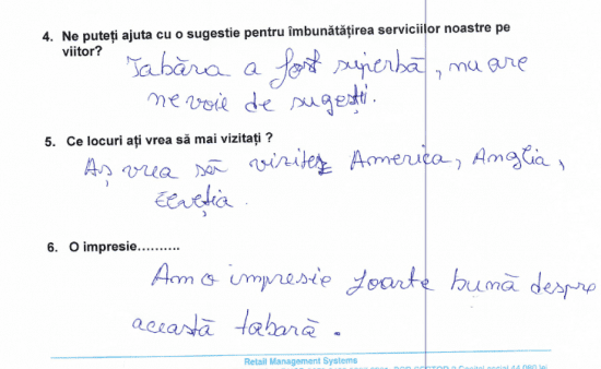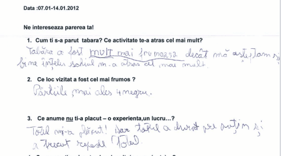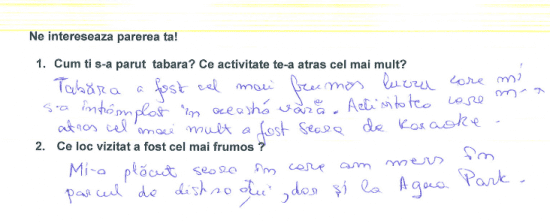 ♥ „Eu cred ca aceasta tabara m-a ajutat sa descopar noi lucruri, sa imi fac noi prieteni. Intr-un cuvant as pune PERFECTA!” (Tabara de vara din Nisipurile de aur, 2013)