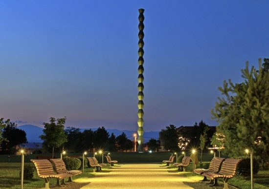 Ansamblul monumental “Calea Eroilor”, este unul dintre cele mai importante locuri din România din punct de vedere cultural cu opere de artă de o importanță majoră: Masa Tacerii, Aleea Scaunelor, Poarta Sărutului și Coloana Infinitului. Coloana Infinitului se găsește în Parcul Coloanei, situat la intrare in oraș, în partea dinspre Râmnicu Vâlcea, iar Masa Tacerii și Poarta Sarutului pot fi gasite in Parcul Central situat în centrul Târgu Jiului. Denumirea de “Calea Eroilor” a fost dată de Brăncuși gândindu-se la sufletele eroilor care au parcurs drumul inițiatic prin viață până la moarte, cand s-au jertfit pentru patrie.De remarcat este si Biserica Sfinții Apostoli Petru și Pavel, o altă piesa semnificativă a ansamblului, integrată aici cu scopul de a crea o legatură între sculpturi. Masa Tacerii, aceasta sculptură simpla lucrată în calcar, face referire la masa pe care au luat-o soldatii înainte de a intra in bătălie. Scaunele au forma de clepsidră, aducând aminte de timpul scurt pe care îl mai au. Totul se întamplă în liniște și tăcere. Urmează Aleea Scaunelor, formată din două banci și 30 de scaune lucrate în piatră, cu forme de clepsidre, aranjate pe cate o parte a aleii în grupuri de câte trei, creând o legatură între Masa Tacerii și Poarta Sărutului ce se gasește înspre răsărit, la intrarea în Parcul Central. Coloana Infinitului, ne duce cu gândul la suișurile și coborâșurile de care avem cu toții parte în viață, dar mai ales de înăltarea sufletelor eroilor nostri la cer. In realizarea coloanei, Una dintre cele mai mari sculpturi din întreaga lume, Coloana Infinitului, considerată de marele Sydnei Geist “sacrificiul infinit”, reprezinta varful artei moderne, o adevarata comoară spirituală lasata de Brâncuși omenirii.
