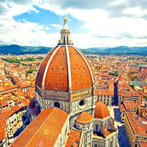 • Continua plimbarea spre cel mai popular lucru de facut in Florenta: vizitarea Domului din Florenta (catedrala). Cattedrale di Santa Maria del Fiore este o capodopera arhitecturala a carei finalizare a durat peste 140 de ani. Exteriorul sau este colorat in marmura alba, roz si verde, iar in timpul zilei, pare ca isi schimba culoarea in functie de pozitia soarelui. Catedrala poate fi vizitata gratuit si, desi ar putea parea aglomerata, interiorul ofera mult spatiu, asa ca asteptarea la coada este scurta. Este una dintre cele mai mari catedrale din lume si are cea mai mare cupola din lume! Vizitatorilor le este permis sa urce in varful domului pentru a avea o priveliste incredibila a orasului, dar pentru a ajunge acolo este nevoie sa urci peste 460 de trepte. Biletele pentru a urca pe Duomo se epuizeaza cu saptamani in avans, asa ca, daca vrei sa o vizitezi, trebuie neaparat sa iti planifici din timp si sa faci rezervare.