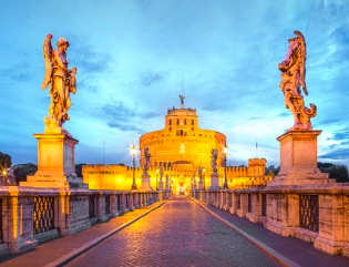 • Descoperă istoria acestui castel medieval, de la mausoleu la fortăreață, cu priveliști panoramice asupra orașului și râului Tibru. Locul emană o atmosferă de mister. De-a lungul timpului, acesta a fost, pe rând, un mausoleu, parte a zidului orașului și fortăreață. Mai apoi, clădirea s-a tranformat în reședință papală, după care a fost întrebuințată ca închisoare militară. Astăzi, aici vei găsi unul dintre cele mai spectaculoase muzee naționale și un obiectiv turistic de neratat. Clădirea avea o construcție relativ simplă ca idee, fiind formată dintr-o bază pătrată de 89 de metri lățime, pe care a fost amplasat un cilindru însoțit de coloane, iar în vârful acestui cilindru veghează falnic Îngerul Nopții. Decorarea cu numeroasele statui de-o parte și de alta îi oferă însă un aer festiv.