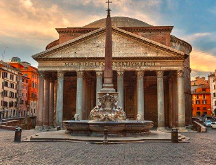 • Panteonul este una dintre cele mai bine întreținute clădiri din epoca romană, fiind oferit Papei în anul 608 de către împăratul Hadrian. Acest obiectiv turistic este foarte apreciat întrucât aici există mai multe monumente funerare a unor regi italieni, dar și a pictorului Rafael.