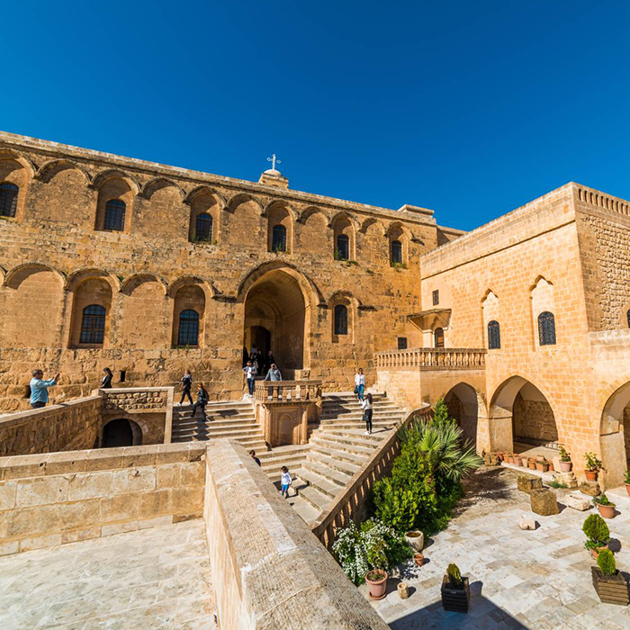 DEYRULZAFARAN – MYDIAT – MANASTIREA MOR GABRIEL – TUR ABDIN (optional) Mic dejun. Timp liber la dispozitie in Mardin, sau optional excursie la Manastirea ortodoxa Deyrulzafaran, la Manastirea Mor Gabriel, pe platoul Tur Abdin si in orasul Mydiat. Prima oprire va avea loc la Manastirea ortodoxa Deyrulzafaran (Floarea Sofranului), cel mai important centru religios asirian, fosta resedinta patriarhala timp de 640 de ani. Plecam apoi spre platoul Tur Abdin, la Manastirea Mor Gabriel (Sf.Gabriel), cea mai veche manastire ortodoxa asiriana si una dintre cele mai vechi manastiri din lume (397 dHr). Vom admira arhitectura unica, cu mozaicuri din perioada bizantina, domuri, capelele, turnuri, terase, usi vechi si motive decorative cu sculpturi in piatra de Midyat. Tur Abdin (muntele slujitorilor lui Dumnezeu) este o regiune deluroasa din sud-estul Turciei, ce cuprinde jumatatea estica a Provinciei Mardin si Provincia Sirnak, aflata la vest de Tigris, aproape de granita cu Siria. Continuam cu un popas in centrul vechi al orasului Mydiat pentru a vizita cladirile istorice, unde au fost filmate nenumarate seriale turcesti. Este unul dintre cele mai interesante orase ale Mesopotamiei, cu o arhitectura unica, unde conacele din piatra sunt realizate cu sculpturi meticuloase. Intoarcere la Mardin si cazare la acelasi hotel. Tarif informativ: 40 Euro/ persoana (include: transport cu autocar, ghid local si biletele de intrare).