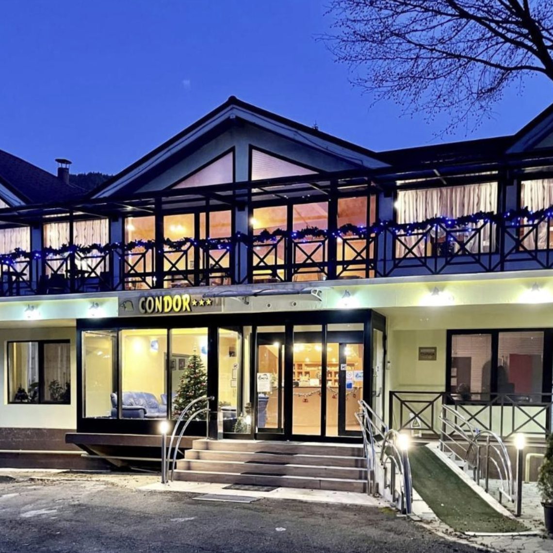 Situată în Poiana Brașov, la doar 400 de metri de Centrul Statiunii si la 12 km de Centrul Istoric al Brasovului, Vila Condor oferă 22 de spatii de cazare -camere duble,triple si apartamente-un salon pentru mic dejun cu terasa cu o capacitate de 65 de persoane,care se poate transforma in sala de evenimente sau de sedinta.