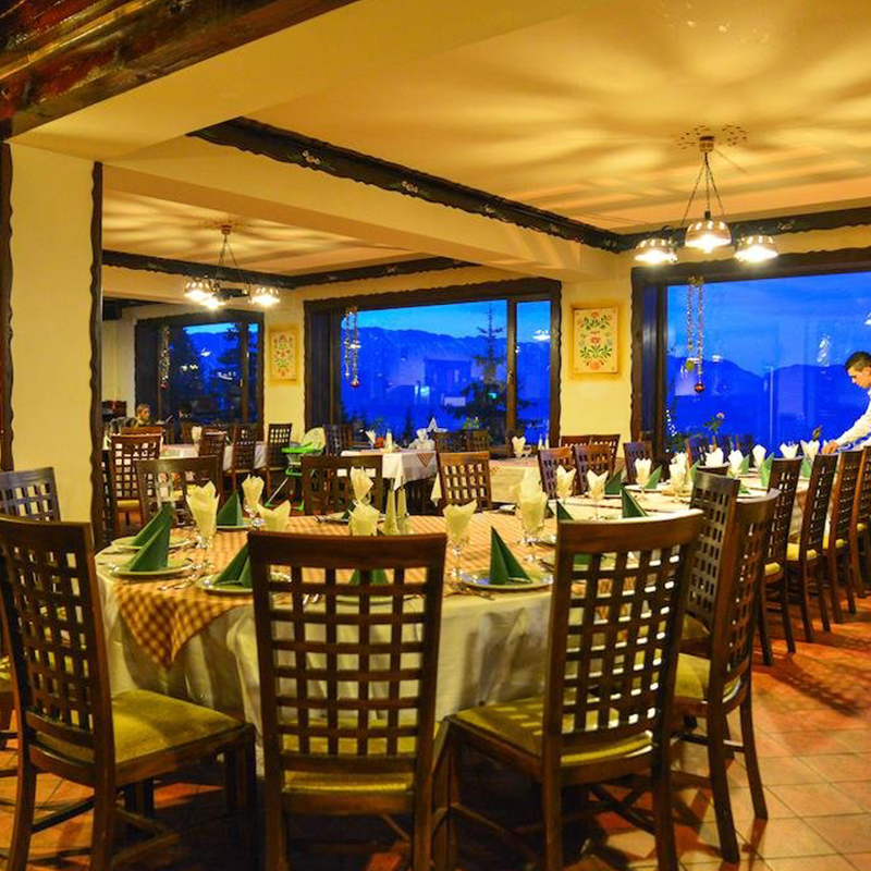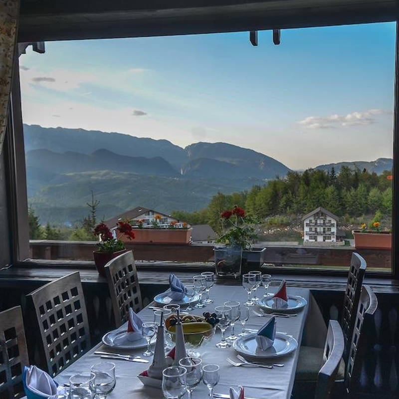 Restaurantul din Resort Fundata este pozitionat in partea superioara a complexului, oferind vedere spre muntii Piatra Craiului si Bucegi.