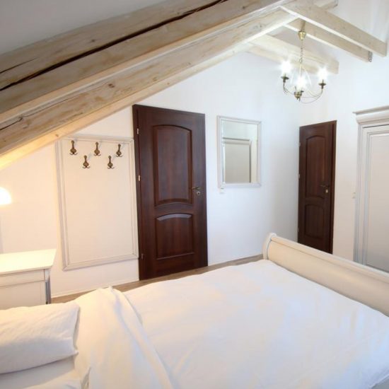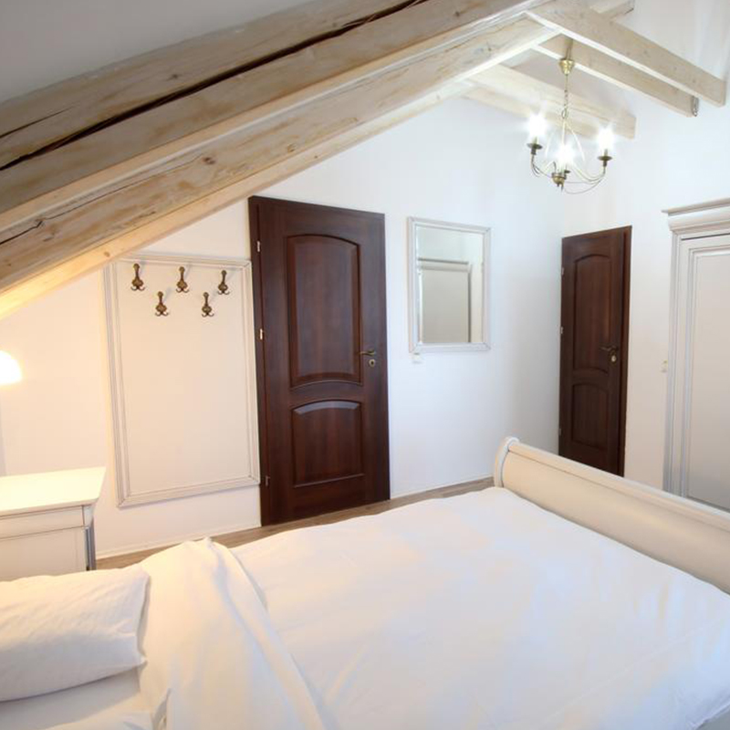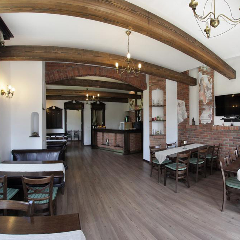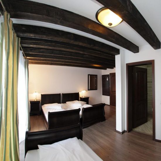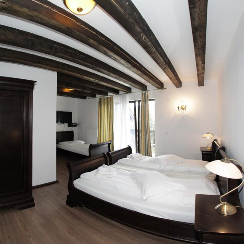 Pensiunea este decorată în stil clasic Ludovic Filip. Camerele au TV LCD cu canale prin cablu şi o baie.
