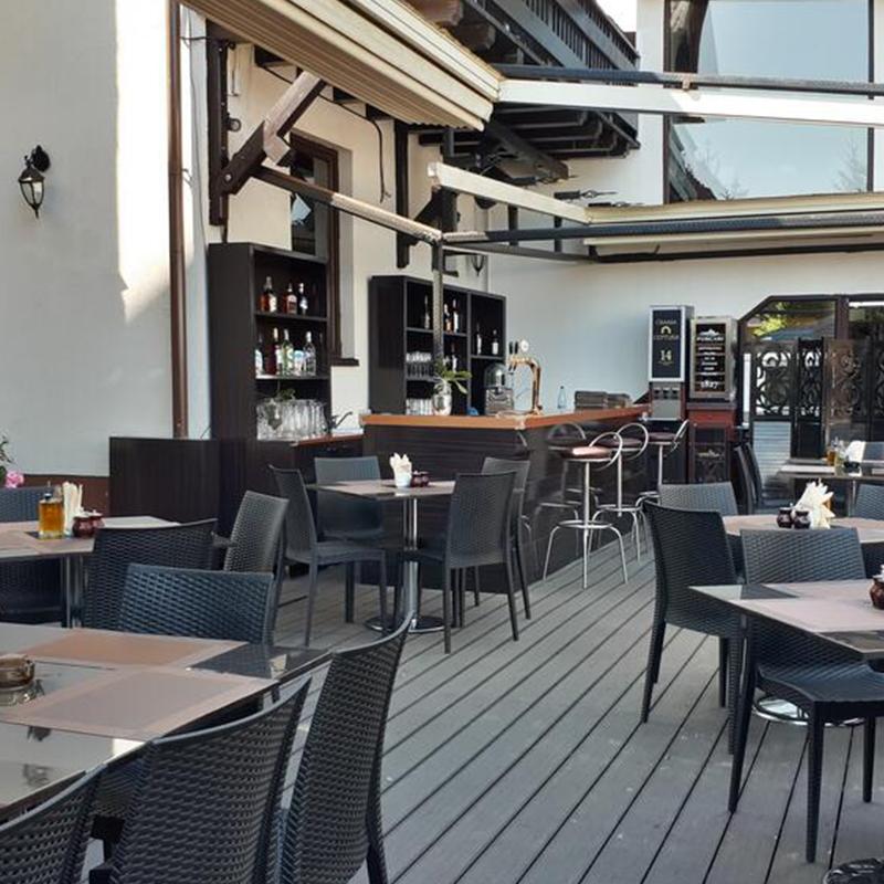 Barul de pe terasa amenajată în grădina interioară a complexului sunt o parte din punctele noastre de atracție.