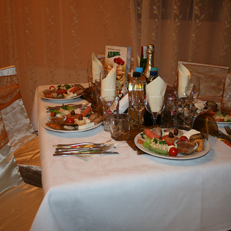 Dispune de o sala restaurant cu o capacitate de 80 locuri dotata cu TV-LCD si sistem audio profesional ce creeaza o ambianta placuta si posibilitatea unor petreceri de neuitat.