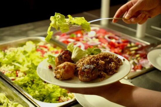 • De la 12:30 la 14:30 – Prânz la restaurantul «bufet»: meniu variat și preparate din bucătăria internațională: salate, supe, feluri principale, paste, deserturi, fructe. Prânz în două schimburi, la fiecare oră.