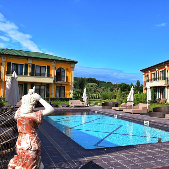 Complexul Spa&Sport Therma Village 5* aduce un concept ultramodern de ospitalitate si servicii superioare. Complexul ofera numeroasele facilitati de agrement si sport intinse pe o suprafata considerabila la malul marii in statiunea Kranevo. Complexul este focusat pe valorificarea apelor minerale termale din Kranevo si alaturi de pozitia excelenta fata de plaja il califica ca una din cele mai deosebite locatii de tip complex sportiv de pe litoralul bulgaresc.
