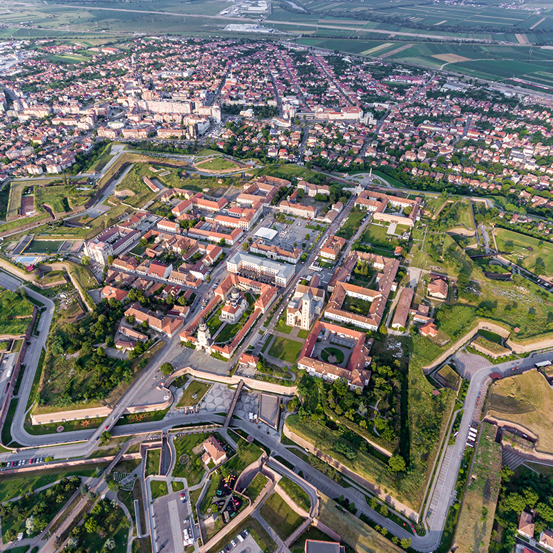 Fortificația bastionară de la Alba Iulia este cea mai mare Cetate din România, care stă în picioare de mai bine de 300 de ani. Cetatea ridicată în inima Transilvaniei s-a dovedit a fi cel mai impunător monument baroc al provinciei. O particularitate a Cetății este dată de succesiunea celor șase porți, situate pe axa est-vest. Impunătoarea fortificație a primit numele împăratului Carol al VI-lea, în vremea căruia a fost ridicată, respectiv Carlsburg-Cetatea lui Carol. Rolul Cetății a fost unul militar, de apărare, dat de sistemul bastionar, de tipologia pieselor de artilerie cu care a fost înzestrată, precum şi de mărimea trupelor existente în interiorul ei. Cetatea a fost atacată o singură dată în existența ei militară, dar niciodată cucerită. Episodul a avut loc în 1849, când 8.000 de soldați maghiari au asediat-o fără succes. Cetatea Alba Carolina a cunoscut în ultimii ani transformări spectaculoase, care o fac tot mai vizibilă pe „tortul” turistic al Europei. În paralel cu lucrările de restaurare, cofinanțate din fonduri europene, s-a avut în vedere si valorificarea patrimoniului său cultural de excepție. Fortificația este locul în care au loc festivaluri culturale, se aud orchestre celebre, unde concertează artiști de top, români și străini.
